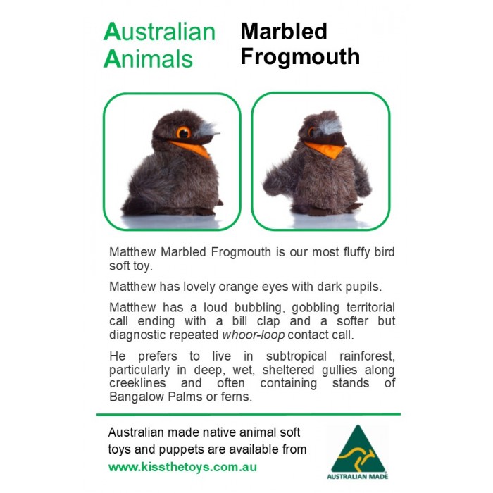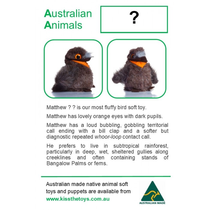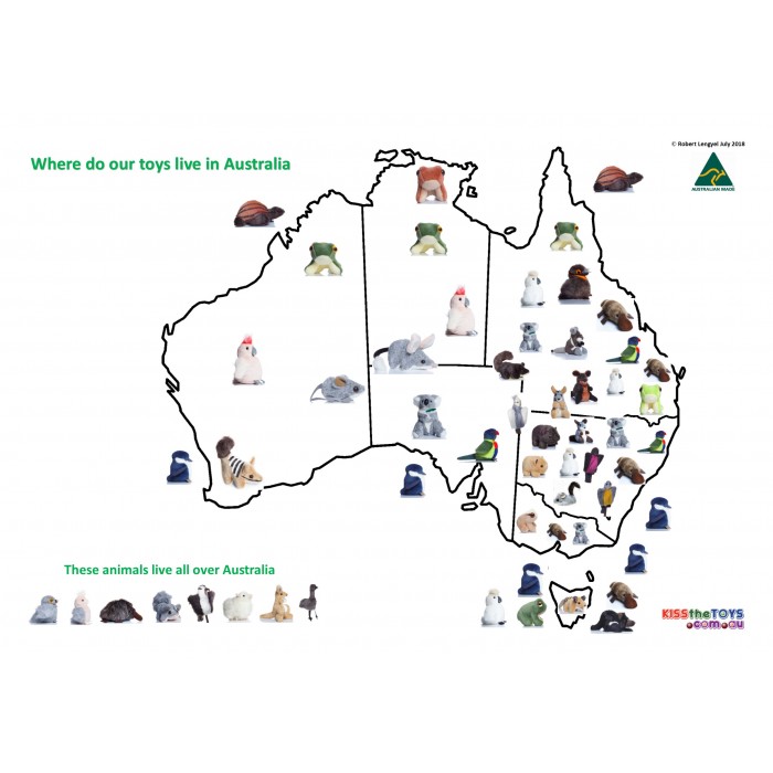 -  A3 poster showing the complete list with pictures of our 37 native animal soft toys and puppets, laminated for protection